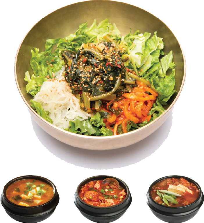 * Any Bibimbop with Choice of Spicy Soft Tofu Stew or Bean Paste Stew $3