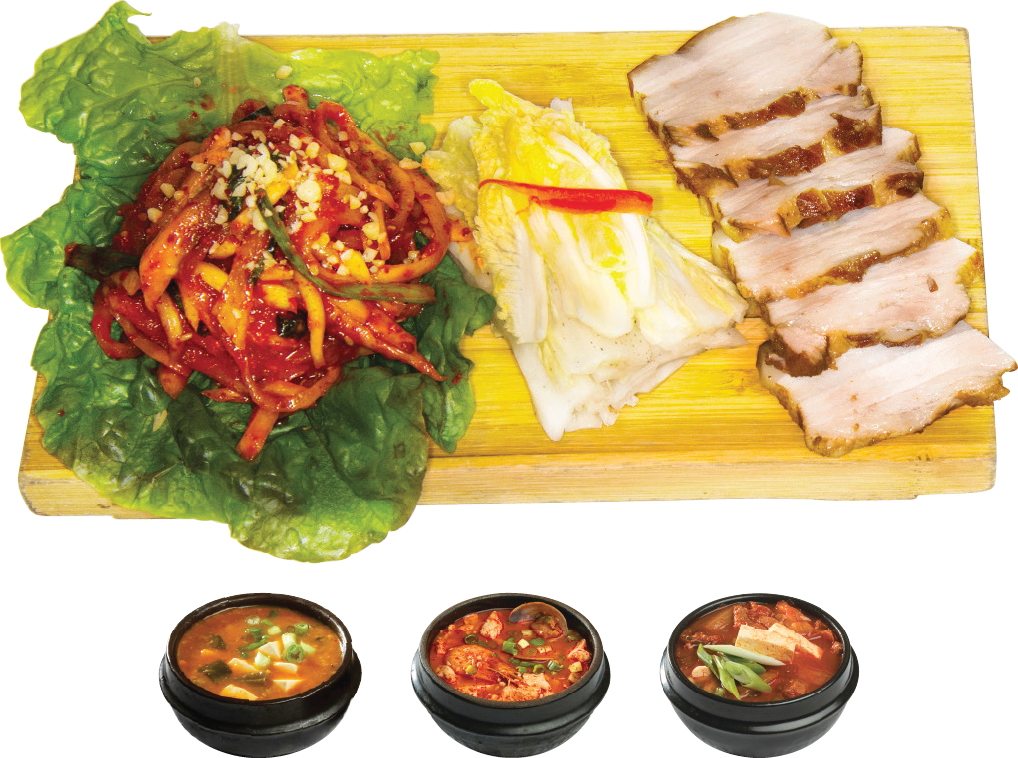 보쌈 + 된장 or 해물 순두부찌개 or 김치찌개